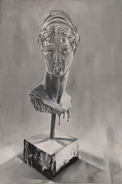 During my A-Levels I developed a fascination with sculpture, sparked by captivating works from the likes of Alina Szapocznikow and the Miaz brothers. I explored how classical sculpture was reappropriated in the modern world as a vehicle to express secular concerns. The Miaz Brothers, in their ‘Antimatter Series: A Boundless Vision’, illuminate current societal issues. Working with silicone I created ‘Drying rack of statues’, presenting distressed visceral fragments of neo-classical sculptures strung out across a drying rack. Here I played on Szpocznikow’s utilitarian use of everyday objects, such as in ‘Lampe Bouche’, creating duality between the silicone classical sculptures and a mundane drying rack.